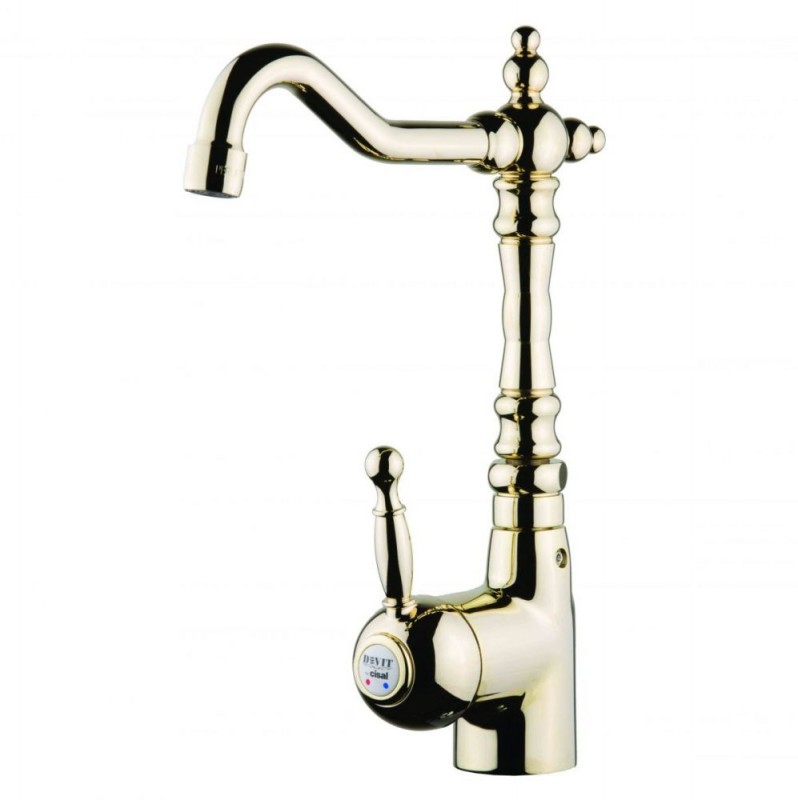 Смеситель для раковины Devit Charlestone высокий однорычажный с донным клапаном золото CN60050037G