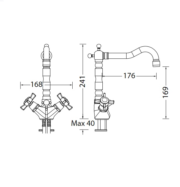 1) Смеситель для раковины Eurorama Orientes двухвентильный латунь хром