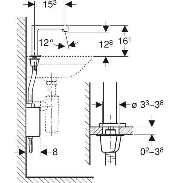Смеситель для раковины Geberit Brenta электронный с термостатом питание от сети хром
