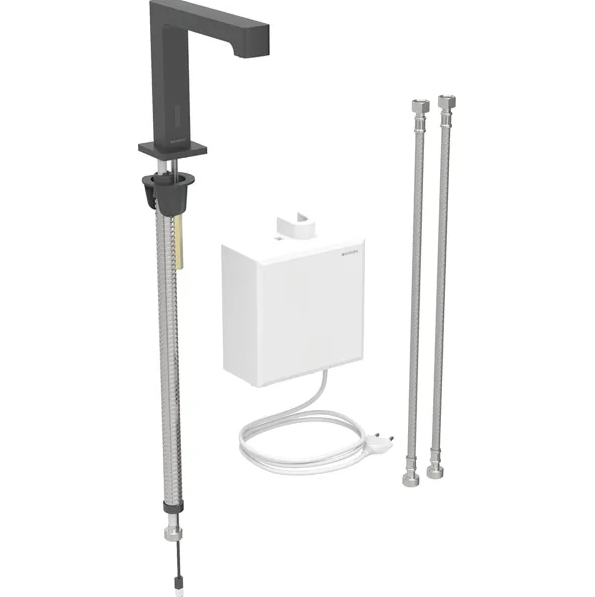 Смеситель для раковины Geberit Brenta питание от генератора с функциональным блоком наружного монтажа латунь черный матовый