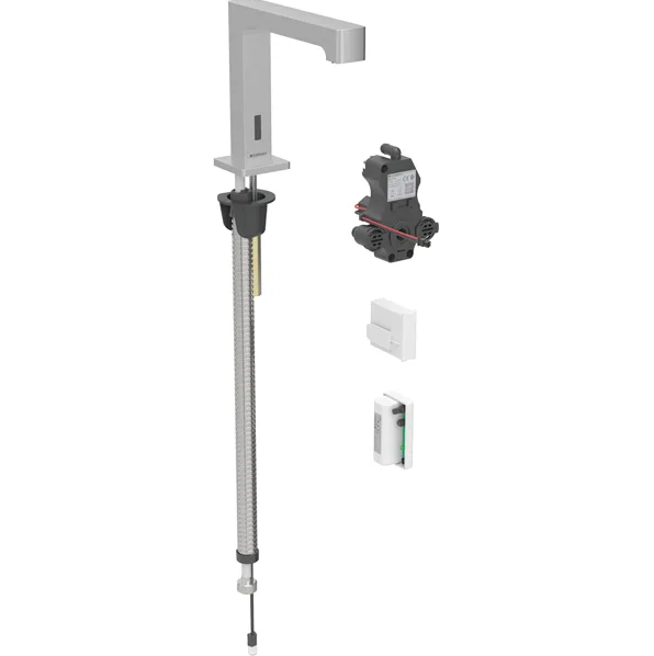 - Для монтажа в монтажные элементы Geberit для умывальника, электронный вертикальный смеситель с функциональным блоком скрытого монтажа