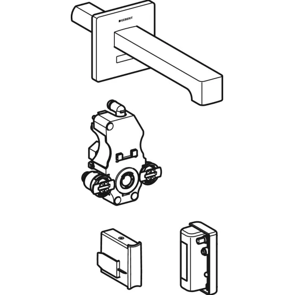 - Для монтажа в монтажные элементы Geberit для умывальника, электронный встраиваемый в стену смеситель с функциональным блоком скрытого монтажа