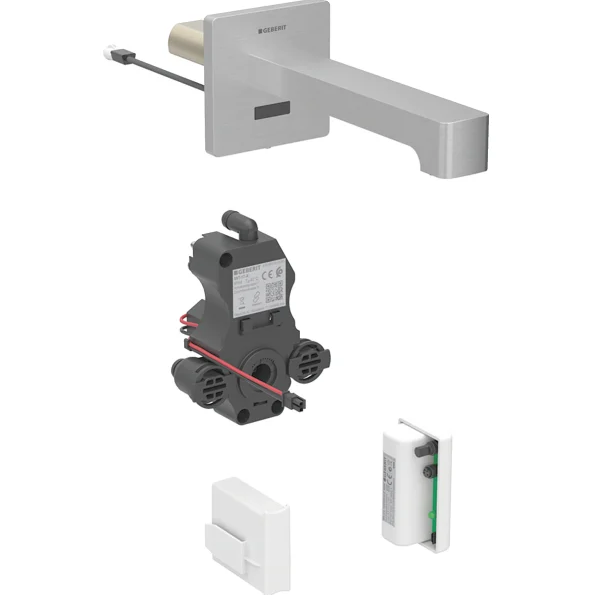- Для монтажа в монтажные элементы Geberit для умывальника, электронный встраиваемый в стену смеситель с функциональным блоком скрытого монтажа