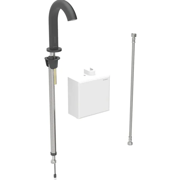 Смеситель для раковины Geberit Piavе питание от батарей с функциональным блоком наружного монтажа латунь черный матовый