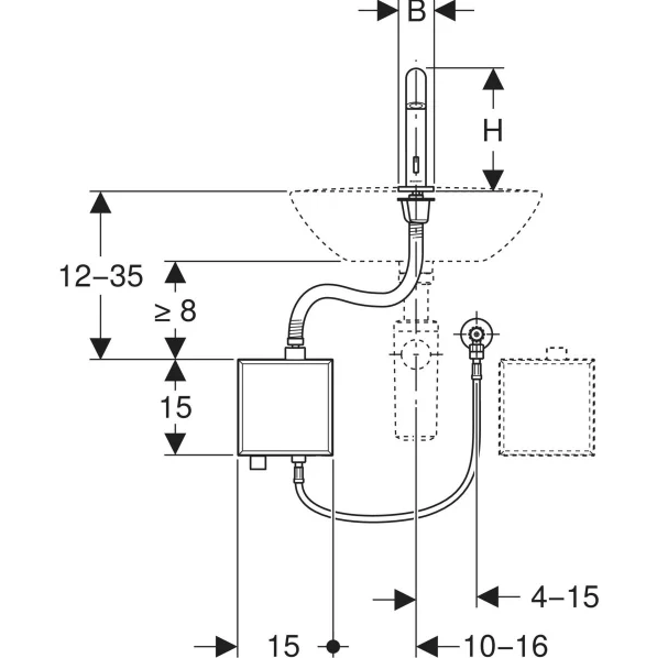 - Функции можно настраивать и проверять с помощью пульта сервисного обслуживания Geberit