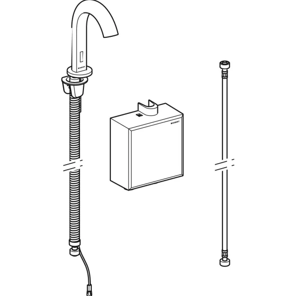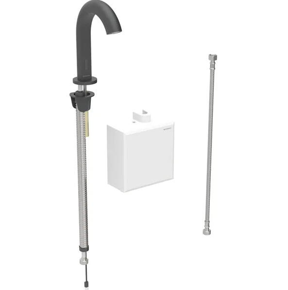 Смеситель для раковины Geberit Piavе питание от генератора с функциональным блоком наружного монтажа латунь черный матовый