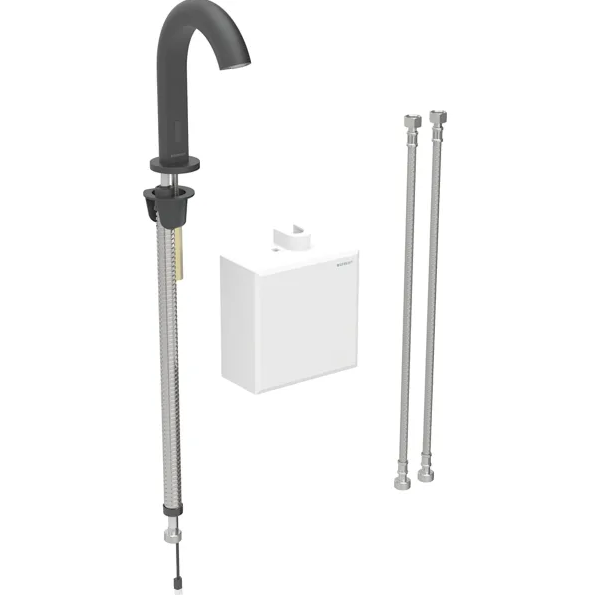 Смеситель для раковины Geberit Piavе питание от генератора с функциональным блоком наружного монтажа латунь черный матовый