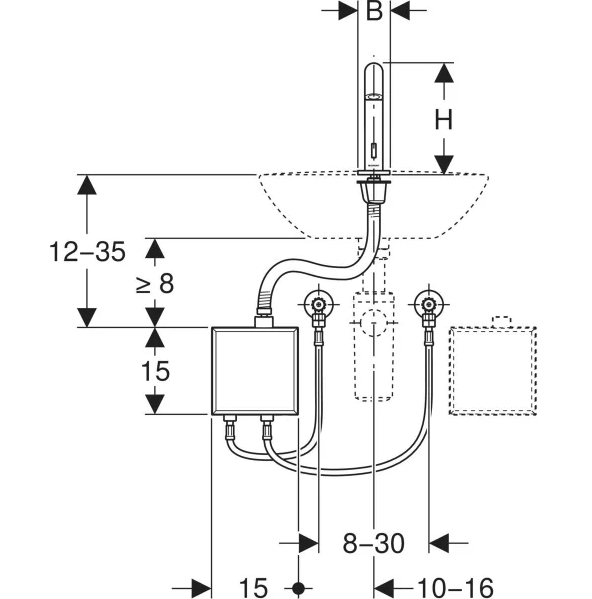 - Функции можно настраивать и проверять с помощью пульта сервисного обслуживания Geberit