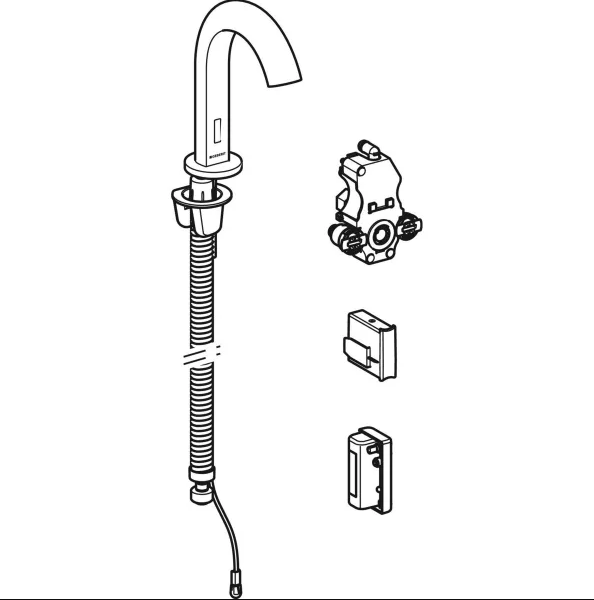 - Для монтажа в монтажные элементы Geberit для умывальника, электронный вертикальный смеситель с функциональным блоком скрытого монтажа