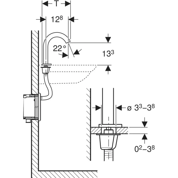 - Для монтажа в монтажный комплект Geberit для электронных смесителей для умывальника, вертикальный монтаж, функциональным блоком скрытого монтажа