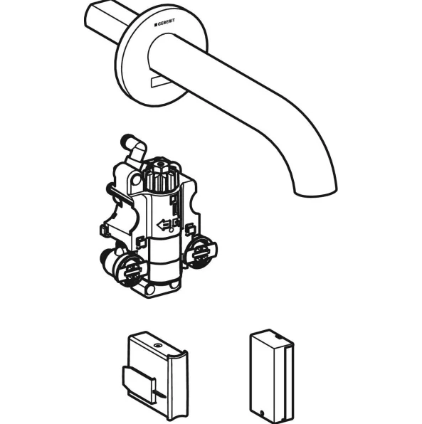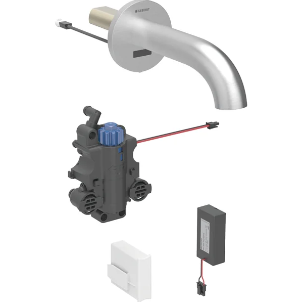 - Для монтажа в монтажные элементы Geberit для умывальника, электронный встраиваемый в стену смеситель с функциональным блоком скрытого монтажа