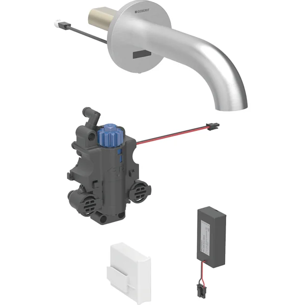 - Для монтажа в монтажные элементы Geberit для умывальника, электронный встраиваемый в стену смеситель с функциональным блоком скрытого монтажа