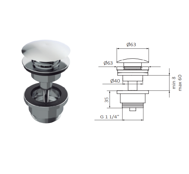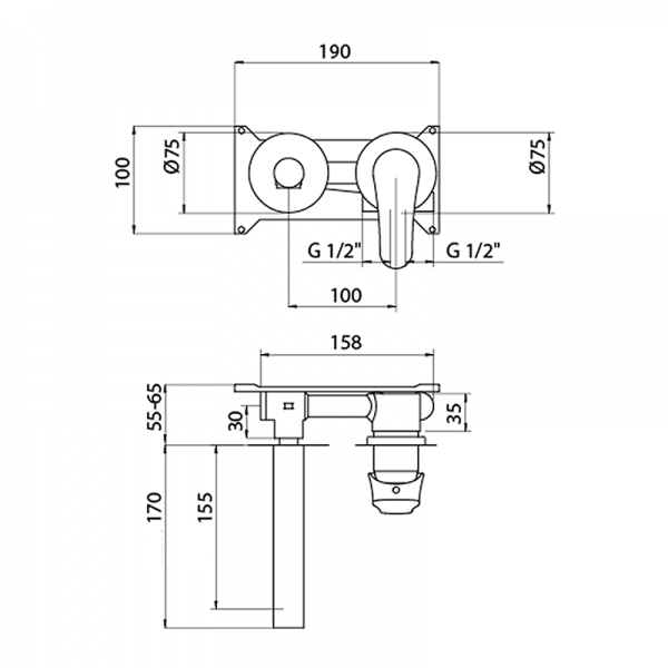 Смеситель для раковины GRB E-Plus скрытого монтажа с донным клапаном однорычажный хром