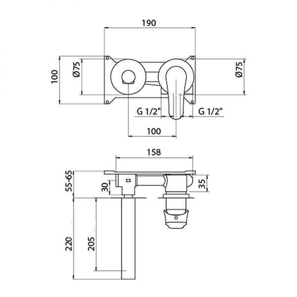 Смеситель для раковины GRB E-Plus скрытого монтажа с донным клапаном однорычажный хром