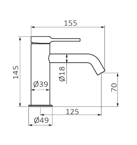 - Длина излива: 125 мм