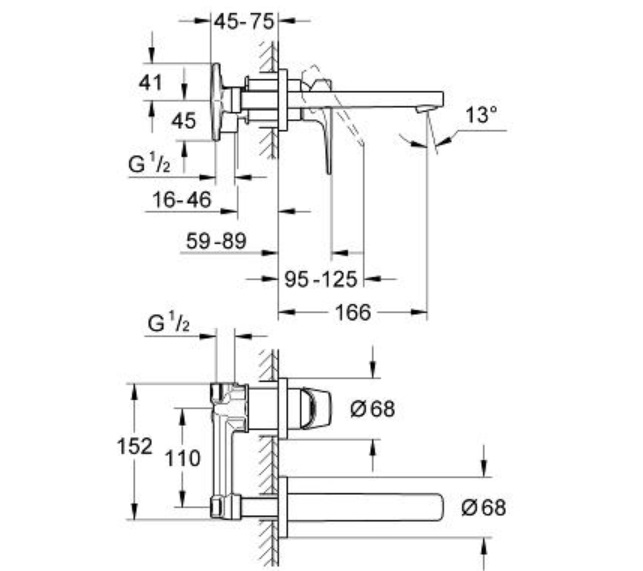 Смеситель для раковины Grohe BauFlow настенный однорычажный хром