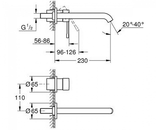 Смеситель для раковины Grohe Essence New настенный однорычажный хром 19967001
