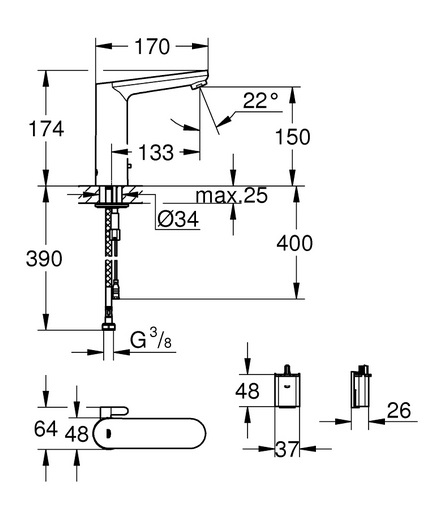 Смеситель для раковины Grohe Eurosmart Cosmopolitan E инфракрасный электронный питание от батареек хром 36422000