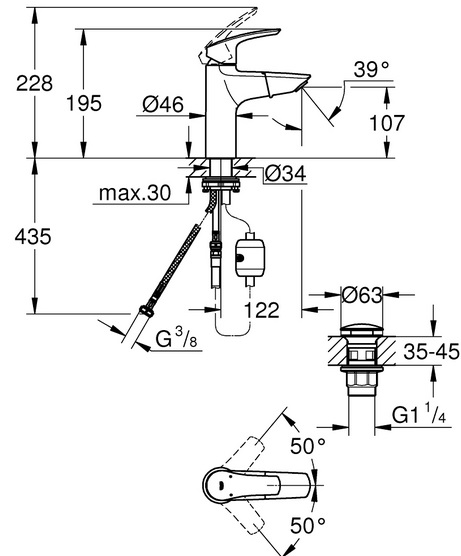 Смеситель для раковины Grohe Eurosmart с выдвижной лейкой хром