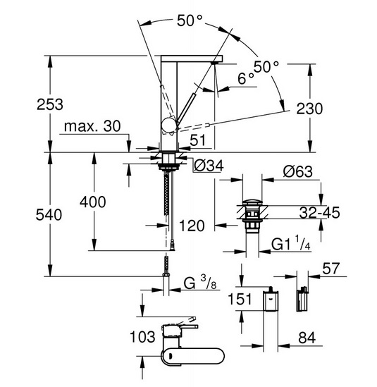 Смеситель для раковины Grohe Plus однорычажный с индикатором температуры хром