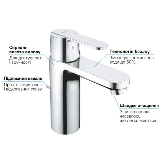 Смеситель для раковины Grohe QuickFix Get однорычажный с донным клапаном хром
