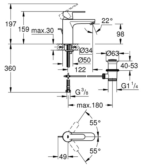 Смеситель для раковины Grohe QuickFix Get однорычажный с донным клапаном хром 23454000