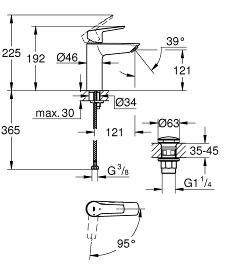 Смеситель для раковины Grohe QuickFix Start однорычажный с донным клапаном черный матовый 237462432