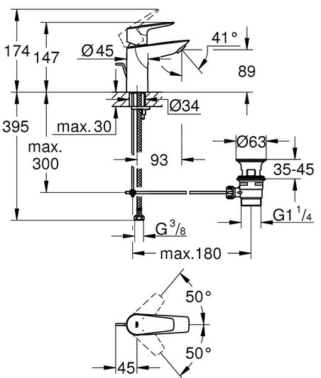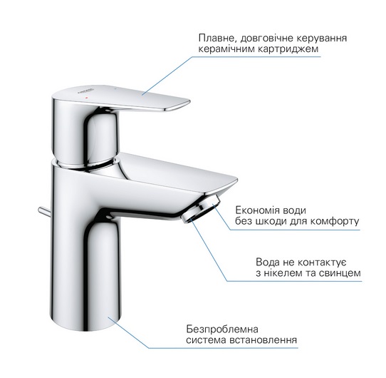 Смеситель для раковины Grohe QuickFix StartEdge однорычажный с донным клапаном хром 24196001
