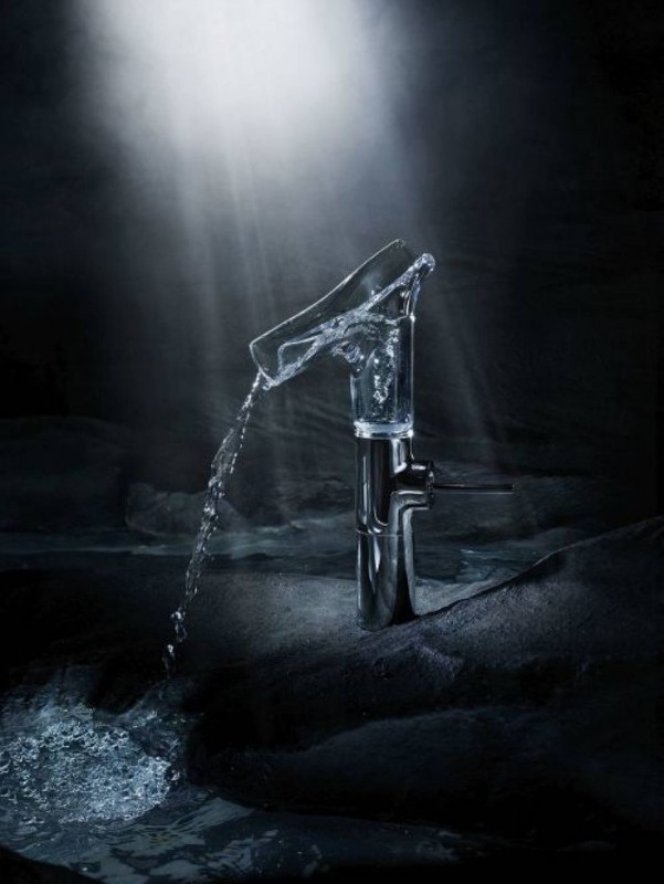 1) Смеситель для раковины Hansgrohe Axor Starck V со стеклянным изливом