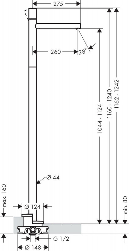 Смеситель для раковины Hansgrohe Axor Uno однорычажный напольный шлифованный черный хром