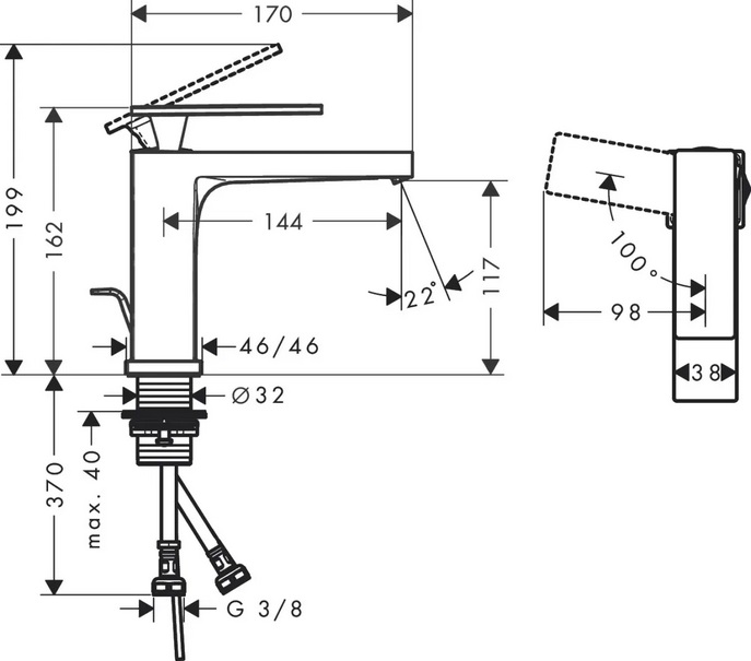 - Поворотные модели или смесители Select без рычага создают еще больший радиус действия.