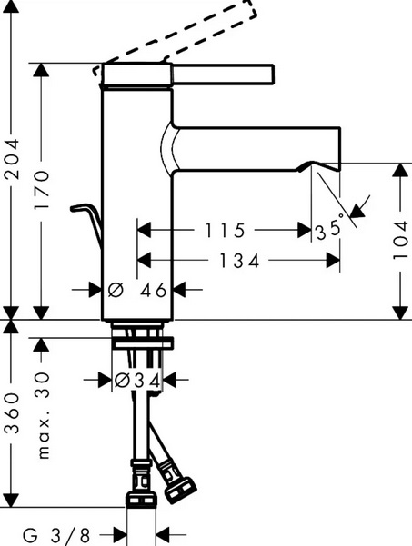 - состоит из: однорычажный смеситель для умывальника, система слива