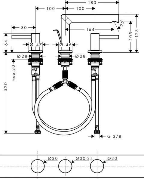 Смеситель для раковины Hansgrohe Zesis S на 3 отверстия с донным клапаном хром 74733000