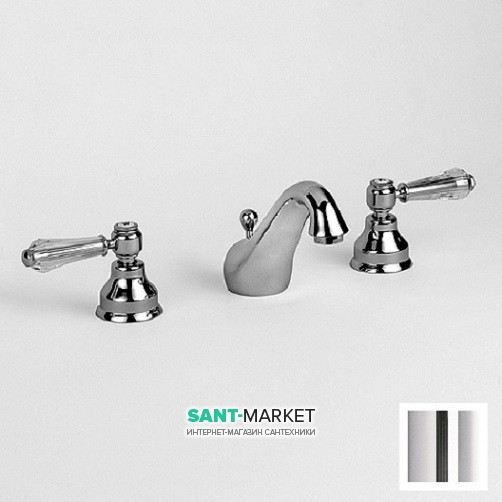 1) Смеситель для раковины Jorger Delphi Deco врезной на 3 отверстия с донным клапаном хром