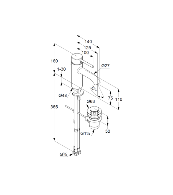 1) Смеситель для раковины Kludi Bozz для безнапорных водонагревателей хром
