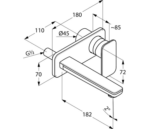 Внешняя часть встраиваемого однорычажного смесителя для раковины, настенный монтаж.