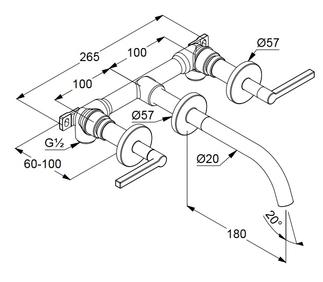 - настенный смеситель для умывальника DN 15