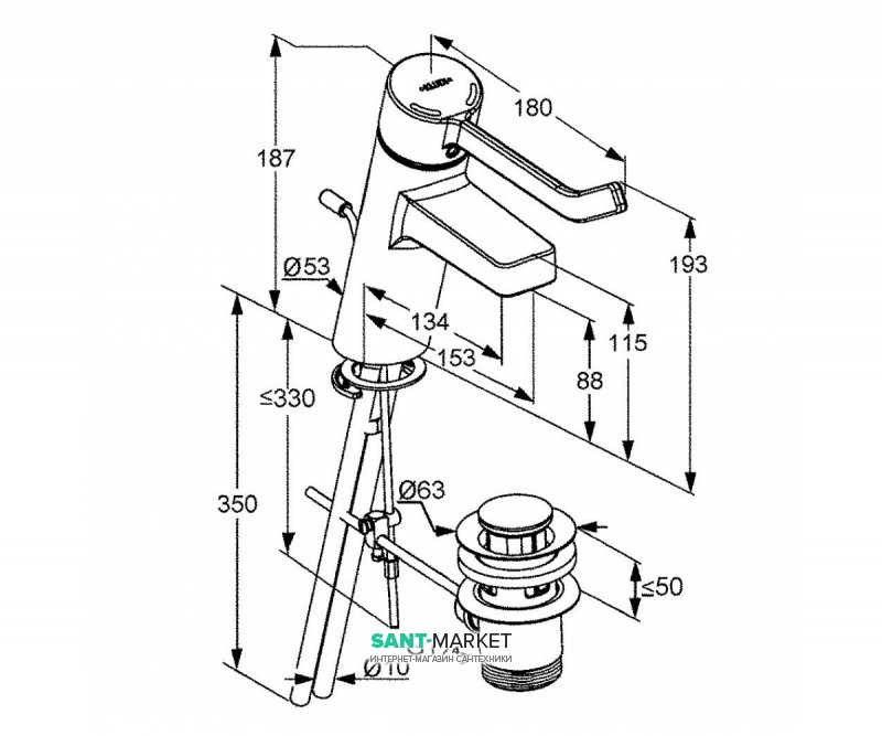 Смеситель для раковины однорычажный с донным клапаном без рычага Kludi Provita хром 333300500