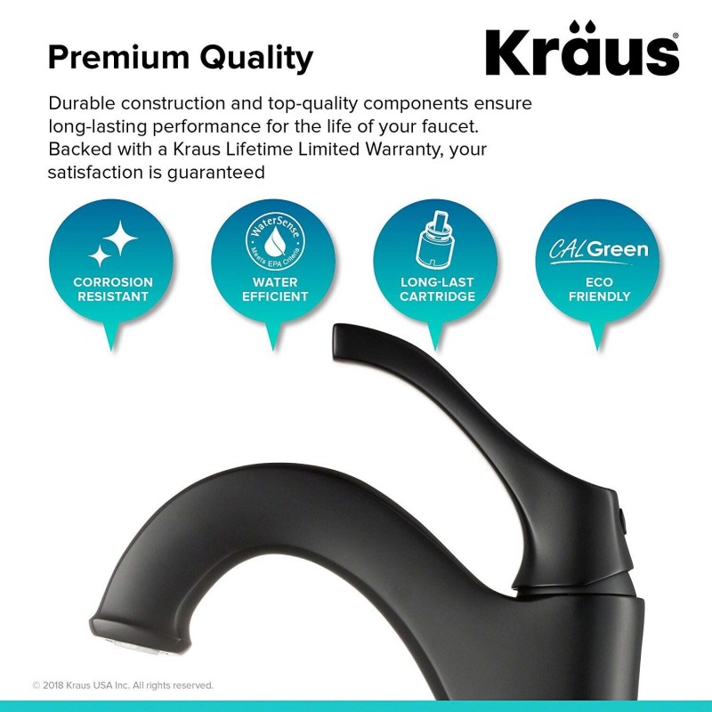 Смеситель для раковины Kraus Arlo однорычажный матовый чёрный