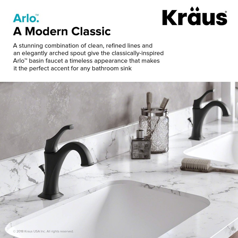 Спешите купить Смеситель для раковины Kraus Arlo однорычажный латунь черный матовый KBF-1201MB по акционной цене.