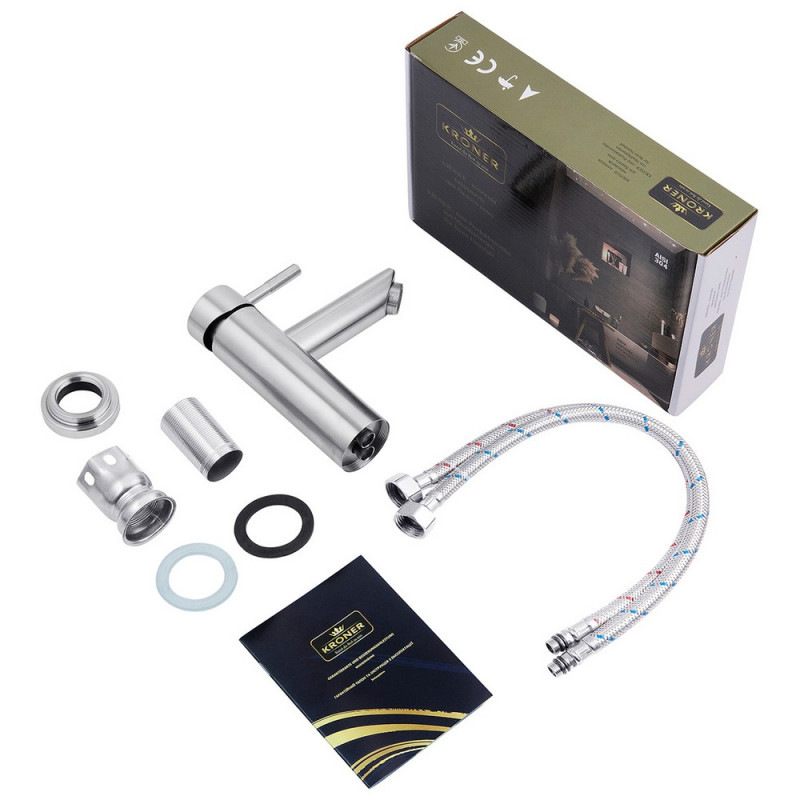 Смеситель для раковины Kroner KRP Edelstahl Klassisch-ESG010 однорычажный никель CV022994