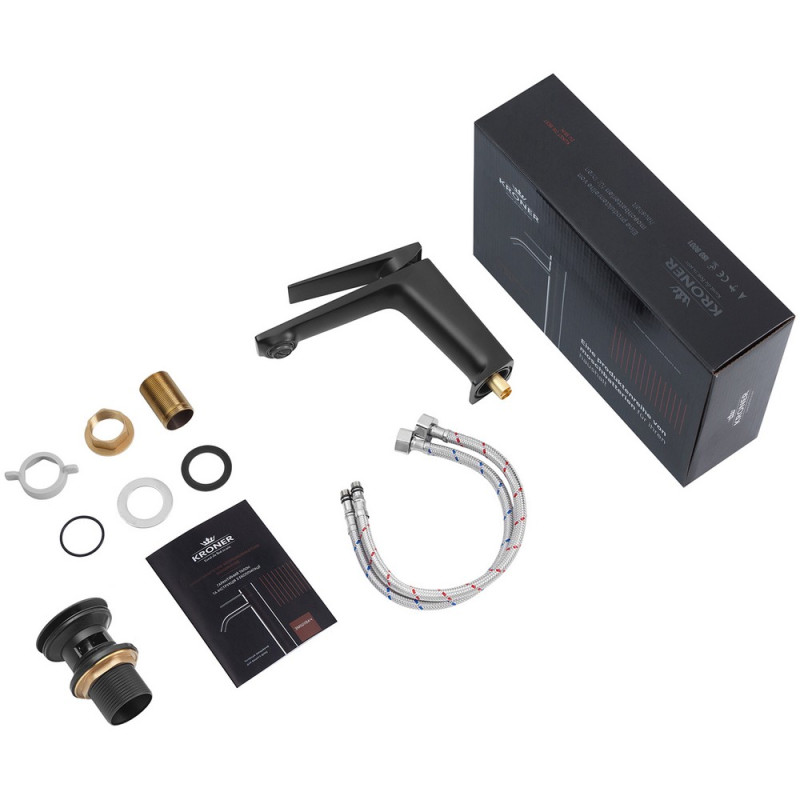 Смеситель для раковины Kroner KRP Ersel-SCH0111BV с донным клапаном черный