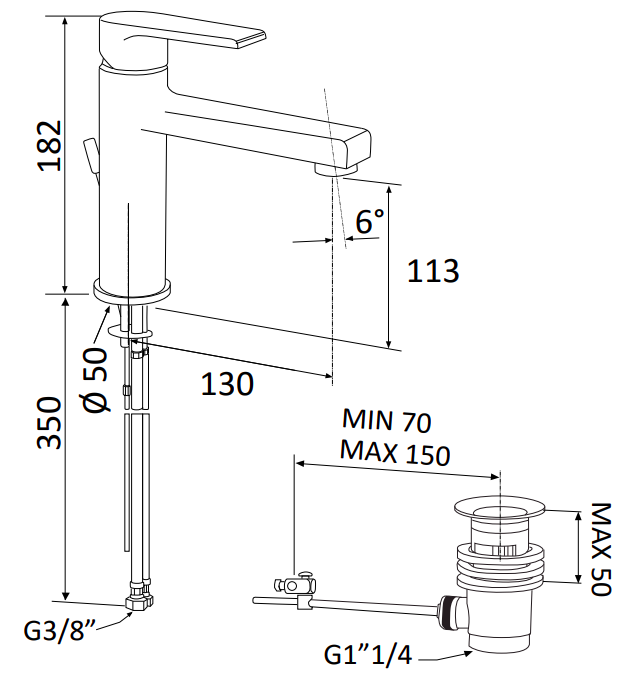 1) Смеситель для раковины Mariani Artic однорычажный с донным клапаном черный матовый