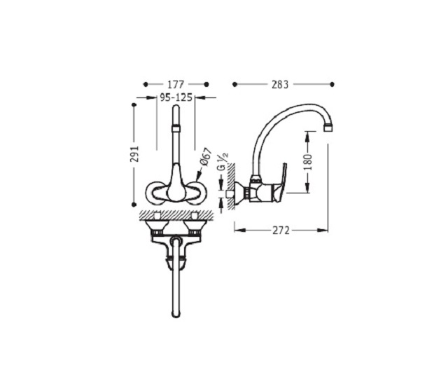 1) Смеситель для раковины однорычажный настенный Tres Eco-Tres хром