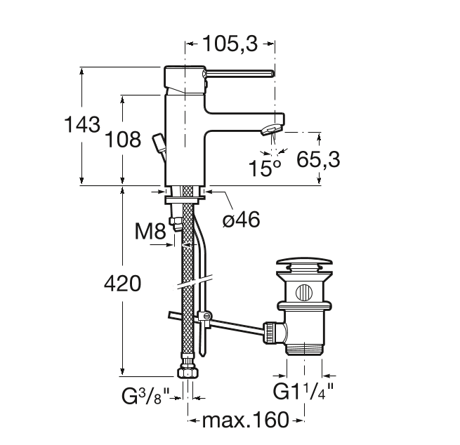 Смеситель для раковины однорычажный Roca Targa с донным клапаном латунь хром A5A3060C00