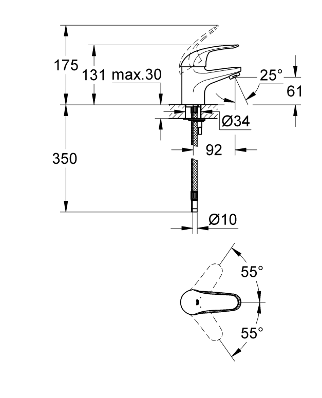 Смеситель для раковины однорычажный Grohe коллекция Euroeco хром 32734000