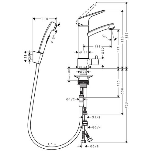 Смеситель для раковины однорычажный с гигиеническим душем Hansgrohe коллекция Talis S хром 31515000