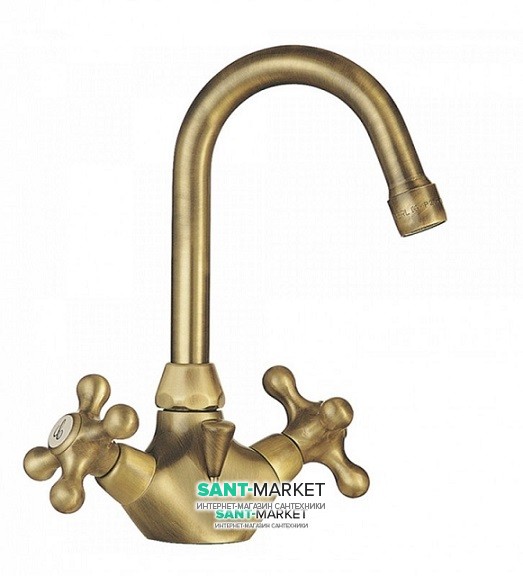 1) Смеситель для раковины двухвентильный Tres Clasic-Tres врезной бронза