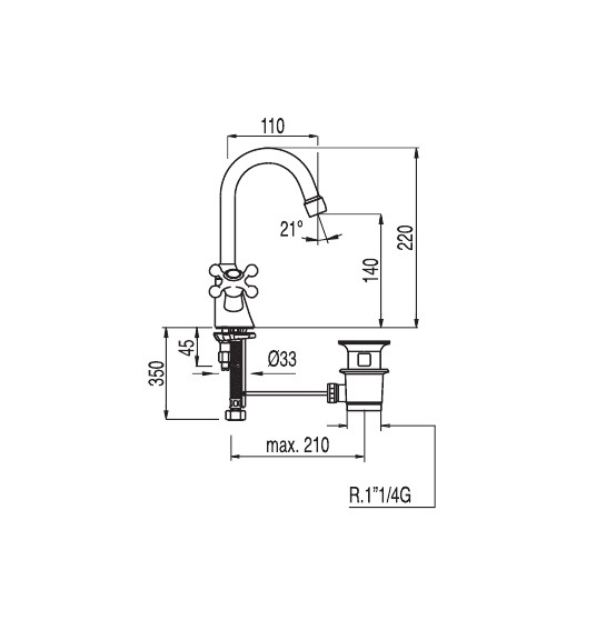 - длина излива 110 мм