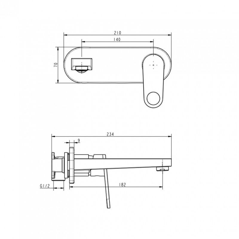 - Длина излива: 182 мм